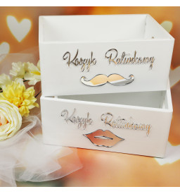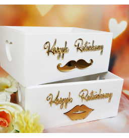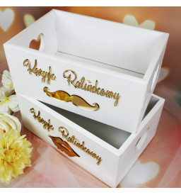 Drewniane białe pudełko 30x40 cm ze złotymi lustrzanymi napisami o dowolnej treści. Napis na skrzynce można zmienić na swój np. kochanej mamie, kochanym rodzicom itp. Produkt jest wykonany bardzo starannie z wysokiej jakości materiałów.