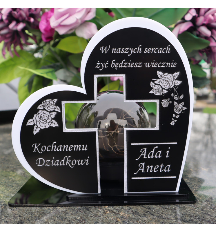 Znicz solarny + podstawka pod znicz grawer z własnym tekstem, dedykacją.