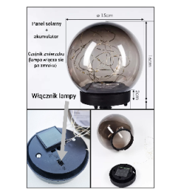 - Znicz solarny "kula" z czujnikiem zmierzchu w zestawie.