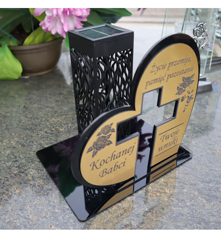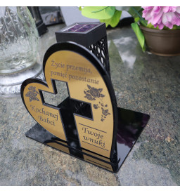 Znicz solarny + podstawka pod znicz grawer z własnym tekstem, dedykacją.