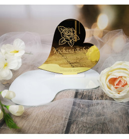 • serce: 18x21cm (3 mm grubość) lustrzana złota/srebrna plexi.