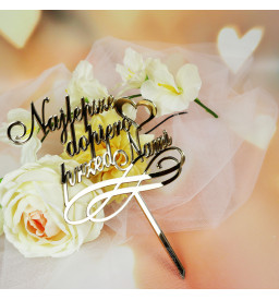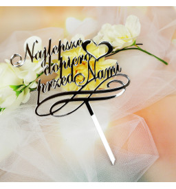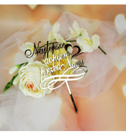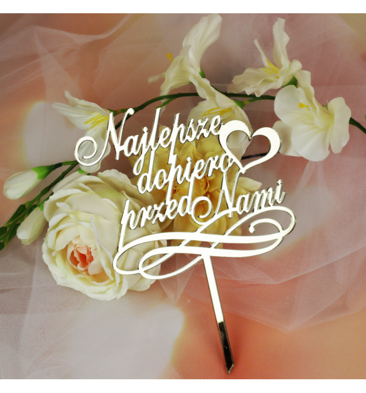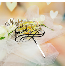 Topper wykonany z lustrzanej plexi złotej lub srebrnej