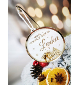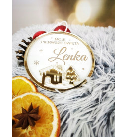 BOMBKA MOJE PIERWSZE ŚWIĘTA Z IMIENIEM ZŁOTY DOMEK BIAŁA NA CHOINKĘ DUŻA